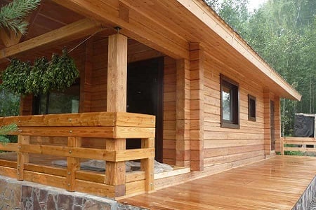 Какова рентабельность строительства дома из лиственницы? Здесь каждый исходит из своих финансовых возможностей и ожиданий отстен из лиственницы эксплуатации. Следует учитывать, что средний срок службы дома из этой древесины – 200 лет при условии абсолютного соблюдения технологии строительства. Для решения проблемы транспортировки существуют не только оцилиндрованные или рубленые бревна, но и цельный, профилированный, клееный брус. Можно обойтись половой, террасной или палубной лиственной доской, евровагонкой, блок-хаусом.
